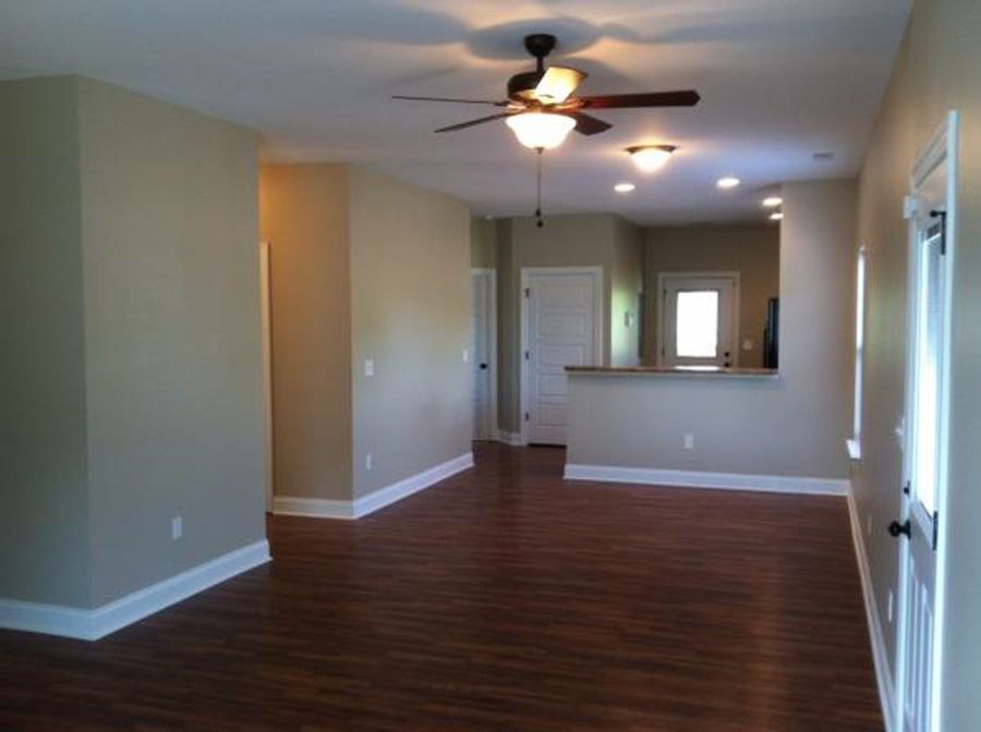 The inside of this home features all kitchen appliances, tile in kitchen and bathroom, hard surface flooring in the living area and carpet in bedrooms.